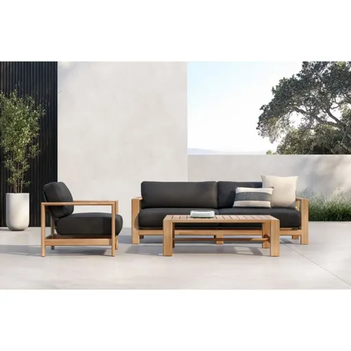 Our Anguilla outdoor collection is a beautiful, worry-free place to spend your lazy days. Exceptionally durable solid teak shapes the coffee table's angular silhouette, distinguished with eye-catching details in the mitered legs, bullnose edges and slatted top. The table is generously sized to park a party's worth of snacks and drinks, making it the perfect partner to an Anguilla sectional sofa or cluster of armchairs. If left uncovered and untreated, natural teak will patina to a beautiful silvery grey.