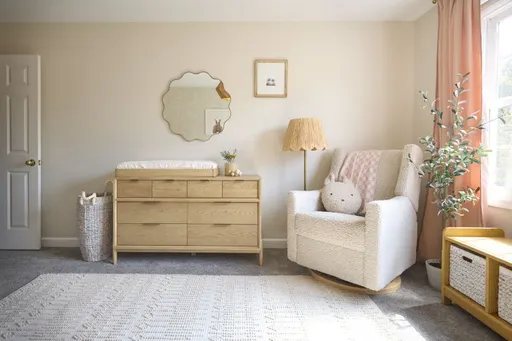 The Babyletto Kiwi Swivel Recliner provides nurseries with sleek style, comfort and even some peace and quiet. The chair swivels 270-degrees, glides back and forth, and electronically reclines with a push of a button, so you won't disrupt your little one's sleep while you get comfortable. There's even a USB port so you can keep your phone charged up and conveniently on hand. The chair is upholstered by hand in an ultra-soft and cozy, texture-rich teddy fabric that's perfect for snuggle sessions. And with its light wood base and neutral almond hue, it brings a modern look to any nursery.
