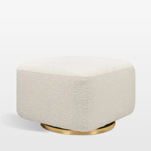 Designed to pair perfectly with the Babyletto Kiwi Power Recliner Chair, the Kiwi Gliding Ottoman provides nurseries with sleek, modern style and comfort. The metallic gold-finished base gently glides back and forth, matching the motion of the recliner. The ottoman was crafted and upholstered by hand in texture-rich boucle fabric.