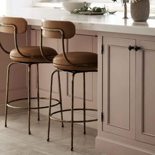 Elegance, luxe leather and comfort. Our Bess stool has what it takes to elevate counter or high-dining table seating. Solid steel finished in burnished brass with hand-hammered texture curves a slim and graceful frame with a ringed accent motif repeated in the seat and footrest. Flawlessly tailored upholstery covers the mounded seat and curved back in supple leather tinted nutmeg brown. Sophisticated yet approachable, the counter stool is made for hanging out and getting comfortable.