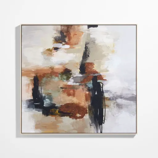 Kichael Bonofiglio uses color to tell stories and create work that is ever-changing but always modern. In "Bloom" washes of greys, browns, creams and greens punctuated with black layer an evocative composition. Beautiful in its abstraction, the large print suggests a portrait, a storm and more depending on your mood and perspective. This giclée print captures all of the textures and subtle hues of Bonofiglio's original acrylic painting and is presented in a natural wood frame.