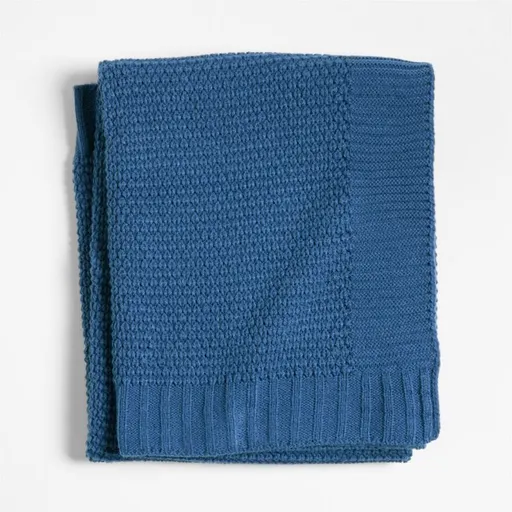 Crafted with a mix of knitting stitches, our bubble knit stroller blanket creates the cozy, comfy texture that babies love in vibrant light navy blue. The supersoft, durable acrylic material provides an insulating layer from cooler weather, and the fiber is breathable to keep little ones at a comfortable temperature when out and about. Evoking the cuffs of a favorite sweater, the blanket's broad border stands up to tugs from tiny fingers. Plus it's machine washable to help maintain its beauty for years to come.