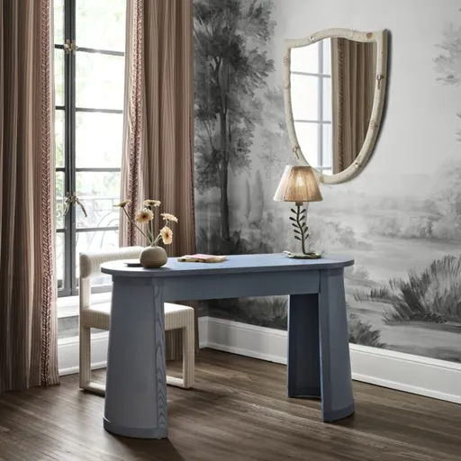 Our Collector's Desk by Jeremiah Brent is a study in great design. An unexpected combo of wood and natural cane gives it rich texture, while the sophisticated shade of light blue looks just at home in a kid's room as it does in a shared family space. Curved sides add a touch of whimsy to this grow-with-them piece that can easily transition from a playroom to their first apartment. Pair it with our Collector's Upholstered Desk Chair for an eclectic, straight-from-the-designer look. Our baby & kids collaboration with celebrated designer Jeremiah Brent is made to last: playfully sophisticated pieces designed for growing up.