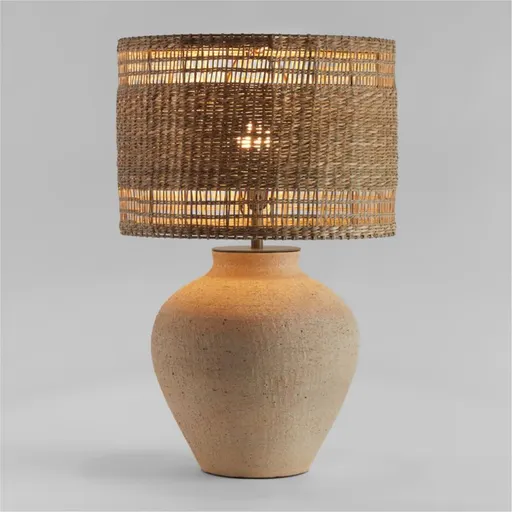 With its ginger jar curves and rustic shade, our Corfu table lamp illuminates interiors with perfect proportions and organic style. A painted earth-tone finish lends an artisan-like look to the base, while the breezy drum shade woven of seagrass complements with the natural color and texture. Perfect for any room in the house, the Corfu table lamp is ours exclusively.
