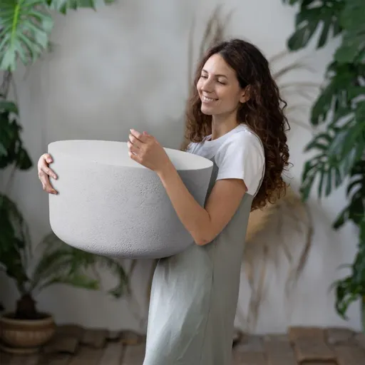 Our simply modern Ella coffee table brings eye-catching minimalism to your outdoor living room. Handcast of glass fiber-reinforced concrete, the cylindrical table is gently tapered and rounded at the base for a sculpted look. A UV- and fade-resistant finish in light grey enhances the striking silhouette and will retain its color for seasons to come.