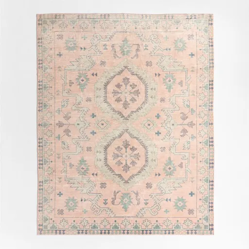 Inspired by traditional Persian rugs—but without the fuss—our Ember washable area rug blends geometric and botanical motifs in a soft mix of muted pinks and serene blues that's perfect for kid spaces. The vintage-inspired pattern is timeless, while the stain-resistant fabric is designed to handle the activities (and messes) of modern life. Machine-washable for easy cleaning, this low-pile rug even features a built-in non-slip backing that makes setup simple.
