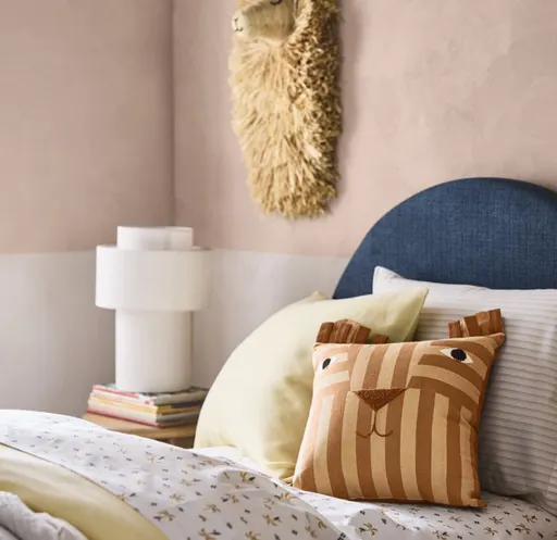 We've taken the edge off the traditional headboard to create a piece that's perfect for a kid's bedroom. Our Emma Upholstered Headboard pairs an arched shape with softly textured upholstery to create a cushy backdrop for reading and dreaming. In an understated denim blue hue, it's a piece that's playful yet timeless enough to work with any decor—even as your child's style changes over the years.