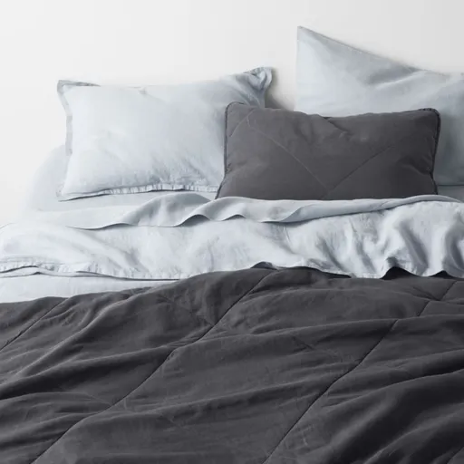 Quilted on the diagonal with oversized diamonds, this sham makes the bed with a beautifully slouchy feel. Sustainable linen in deep grey-blue weaves the laid-back pillow cover, an updated take on intricate quilting. We love this sham paired with the matching quilt or mixed with our other exclusive midnight navy bedding for a relaxed, layered look. Bed pillows also available.