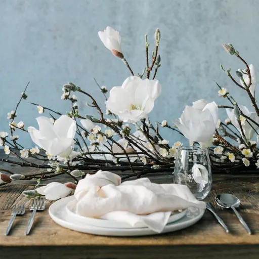 Spring beauty and potential, all year long. Delicate buds and blossoms stretch skyward in a crafted botanical that ensures an extended run on a seasonal favorite. Blooming with creamy, subtly hued petals and velvety pale green buds, this faux magnolia flower branch is just the thing for any of our tall, non-watertight vases and vessels.