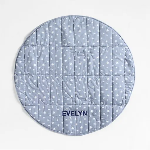 Our Fold and Go Portable Baby Mat is an essential for parents everywhere. Need a surface for an impromptu diaper change? A play mat for tummy time? A comfy spot for naps or picnics? This portable blue star-print mat checks all those boxes. Easy to fold up, store and transport, it has a 100% organic cotton percale exterior with polyester fill, so it's soft yet supportive for little ones. And it's conveniently machine-washable, so you can keep it fresh, clean and ready to travel. Embroider it with your baby's name for an extra-special touch.