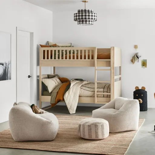 Light and bright in gorgeous washed light ash and poplar wood, our Gemini Convertible Bunk Bed brings an elevated look to your kid's bedroom. Skillfully crafted to last in solid ash, poplar and ash veneer, it's finished with subtle wire brushing to showcase the beautiful wood grain. The 2-in-1, space-saving bed can be used as a classic bunk or separated into 2 identical twin beds. Pair with other pieces from our Gemini Collection to complete the look.