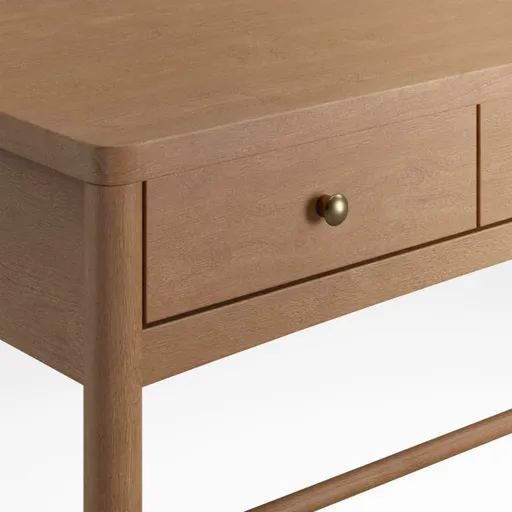 Featuring a clean and timeless design that makes it extremely versatile, our Hampshire Desk works well with nearly any type of decor. Solid poplar construction makes it as durable as it is beautiful, and its natural finish will never go out of style. Metal knobs with antique brass finish add a charming touch. Coordinates with our Hampshire furniture collection.