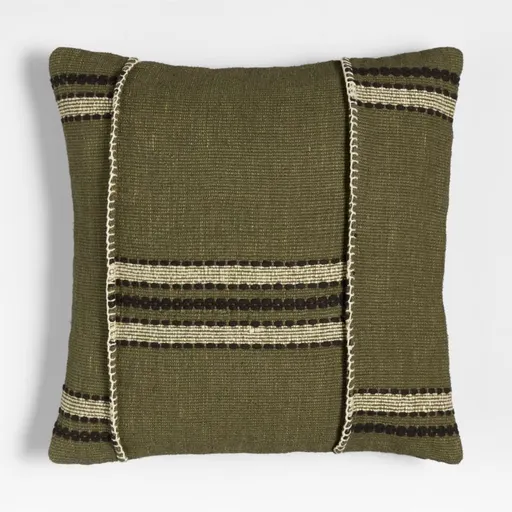 Toss Helena on a sofa, armchair or bed to instantly add vintage charm and artisanal authenticity. Woven with natural linen, silk and cotton fibers in burnt green, black and white, the throw pillow cover boasts a variety of weaves for understated pattern and texture. Skilled craftspeople unite the panels of elevated fabric with a contrasting white blanket stitch that's meant to be seen. Fill our exclusive striped throw pillow cover with a plush feather-down or lofty down-alternative insert (sold separately).
