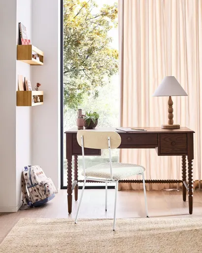 A bestseller for a reason, our Jenny Lind desk is a showstopping study solution that keeps bedrooms and playrooms organized, and the included hutch adds extra storage space for displaying favorite books and collectibles. The iconic collection, with its intricate wood turnings, has been made in the same location with the same classic design for more than 20 years—but its modern sensibility means it hasn't aged a day. Each spindle is made from a single piece of wood, then hand-sanded to capture every gorgeous detail. The lilac rose stain allows the desk's wood grain to show through, while adding a soft hit of color to a space. Fun fact: This forever classic is named for the 19th century opera singer Jenny Lind, who was the pop icon and influencer of her day.