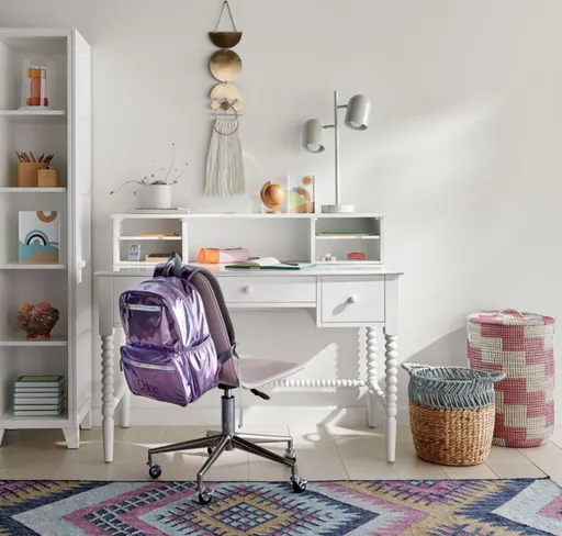 A bestseller for a reason, our Jenny Lind White Desk is a showstopping study solution that keeps bedrooms and playrooms organized. The iconic collection, with its intricate wood turnings, has been made in the same location with the same classic design for more than 20 years—but its modern sensibility means it hasn't aged a day. Each spindle is made from a single piece of wood, then hand-sanded to capture every gorgeous detail. Fun fact: This forever classic is named for the 19th century opera singer Jenny Lind, who was the pop icon and influencer of her day.