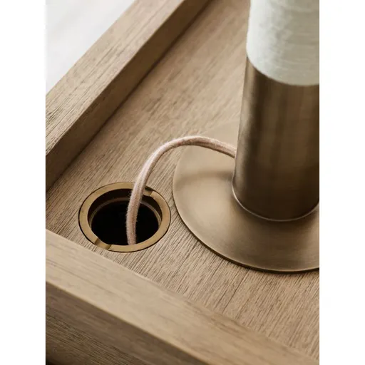 Our Keane desk takes a home office essential to the next level in beautiful solid mahogany and mahogany veneer. A natural finish puts the focus on the wood, while architectural lines keep the look clean and refined. The gallery top is outfitted with a grommeted opening to keep lamp and device cords plugged into the integrated power neatly contained. A wide open cubby features a pull-out keyboard tray and is accompanied by an offset drawer for closed storage. Our best-selling Keane collection is a Crate & Barrel exclusive. Designed by Bill Eastburn of William Eastburn Design. FSC®-certified solid mahogany, mahogany veneer and engineered wood from responsibly managed forests. Natural finish. Brass drawer pull and cord grommet. 1 drawer. Pull-out keyboard tray. Two 12-volt outlets and two USB ports. Made in Indonesia.