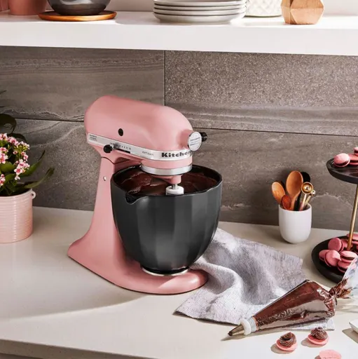 Customize your KitchenAid stand mixer with this gracefully faceted bowl made of titanium-reinforced ceramic glazed in modern matte black. Ideal for chilling cookie dough or melting ingredients, the bowl has great heat and cold retention and may be used in the freezer, microwave and oven. This black shell bowl fits all KitchenAid 4.5- and 5-quart tilt-head stand mixers and resists chipping, cracking, crazing and staining.