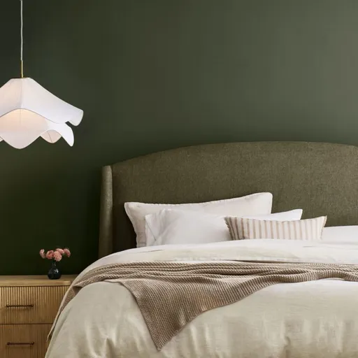 Our custom bed collection lets you mix and match our top-selling headboards and bases for a look that's truly yours. The Lafayette tall upholstered headboard gives your bed the sumptuous curves of a French-style chaise with a rounded top and sloped wings. The elegant headboard pairs beautifully with the Batten bed base, which features a sleek plinth design and the lively grain of oak veneer enhanced with a white oak finish. A great choice for storage-challenged bedrooms, the base seamlessly integrates a drawer at the foot of the bed for placing bedding, blankets and out-of-season garments.