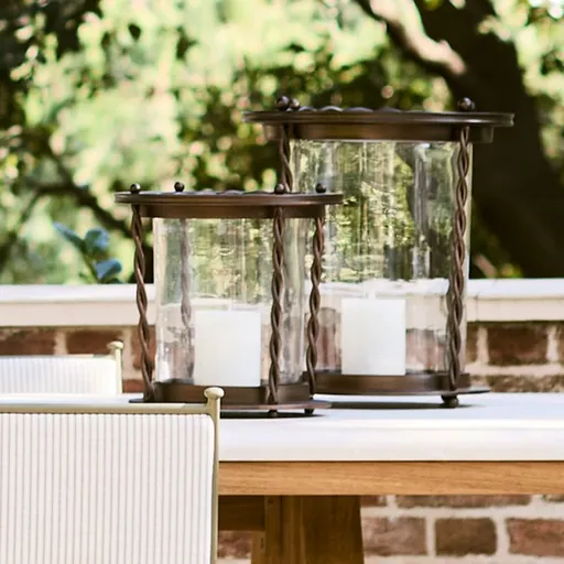 For a fun take on traditional lanterns, Jake Arnold designed Langdon with twisted rope details reimagined in metal. Rustproof aluminum shapes the tall bronze-finished lantern, while the clear glass insert protects candles from the breeze. Langdon instantly adds warmth, light and European charm—we especially love that faux rope handle—to indoor and outdoor decor. Jake Arnold's first-ever outdoor collection elevates your oasis with his fresh L.A.-meets-London style. Think insider-worthy details, real-life comfort and materials chosen to weather the elements.
