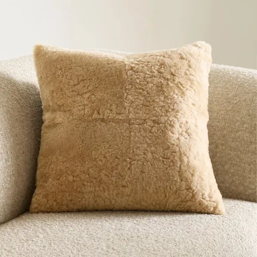 Totally luxe and irresistible to the touch, this cozy throw pillow indulges in pure sheepskin. The cuddly shearling in toasty camel brown layers softness and extravagance onto your sofa, armchair or bed-we especially love Malmo on a bed made up entirely in warm hues. Backed in performance fabric, our square throw pillow includes your choice of a plush feather-down or lofty down-alternative insert.