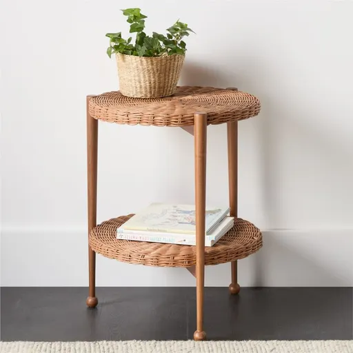 3. Margot 18" Wicker and Brown Wood Round Nursery Side Table