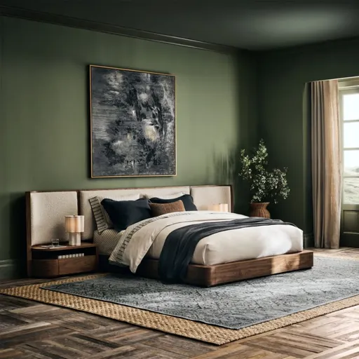 3. Milano Walnut Wood Upholstered King Bed with Nightstands