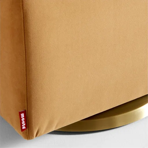 Our Milo Upholstered Gliding Ottoman was exclusively designed just for us by the amazing artisans at Monte Design. Made from durable, family-friendly fabric, our upholstered ottoman is ready for a nursery, kid's room or family room. It features a kiln-dried hardwood frame, which will be sure to last for years to come. The incredible brushed gold metal pedestal base gives this ottoman a look like no other.