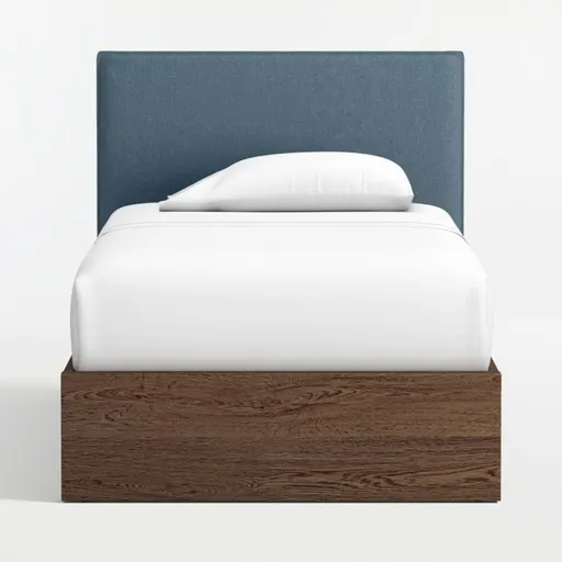 Our Noa bed sets a beautiful foundation for a room that can grow with your child. Between its understated upholstered headboard and deep brown wood base, the bed has a stylish versatility that works with any decor. Plus, the cushy, softly textured upholstery gives it a cozy feel that makes kids of all ages look forward to bedtime.