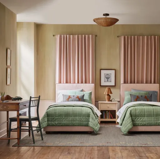 Designer Louise Roe has created a bed that kids will love as much at age 16 as they do at 6. French for "little sailor," our Petit Matelot upholstered bed features a classic silhouette wrapped in a bespoke ticking stripe fabric and finished with matching piping. The upholstery reimagines the classic French country pattern in a fresh color palette of rust and buttery cream. Wood bun feet and an invitingly low profile give this elegant bed a hit of modern personality. It pairs beautifully with any of the wood furniture pieces in our Sharland England collection. Heritage made modern: Our exclusive collection from Sharland England founder Louise Roe is inspired by country gardens, cherished heirlooms and beloved childhood tales.
