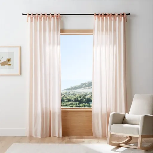 Supersoft organic cotton curtains in a modern, small-scale take on the classic windowpane pattern are an easy style refresh for any nursery or kid's room. Pink ties add a pop of playfulness. And the semi-sheer, kid-friendly fabric is conveniently machine washable.