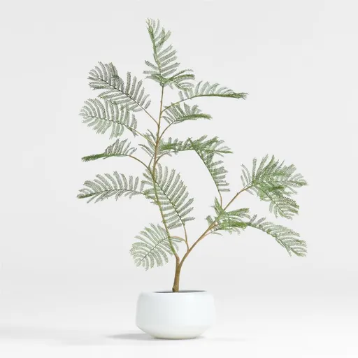 Lush and lifelike fern fronds unfurl in fresh shades of green. Potted in a modern organic planter, the sculptural fern fools the eye with delicate details and arching branches, while the low ceramic pot is finished with a dip in bright white glaze. Perfect for bringing a spot of brightness indoors, our no-maintenance artificial potted fern fits perfectly on a console table.