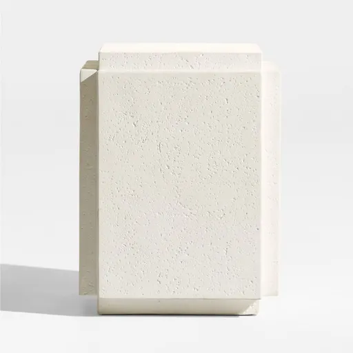 Reminiscent of traditional Pueblo architecture, our Puebla side table complements outdoor living spaces with a minimalist silhouette. Stepped edges lend interest to the simple design for a look that's classic yet modern. Made of a durable mix of cement, sand, fiberglass and powdered stone, the off-white side table brings neutral color and natural texture to living rooms.