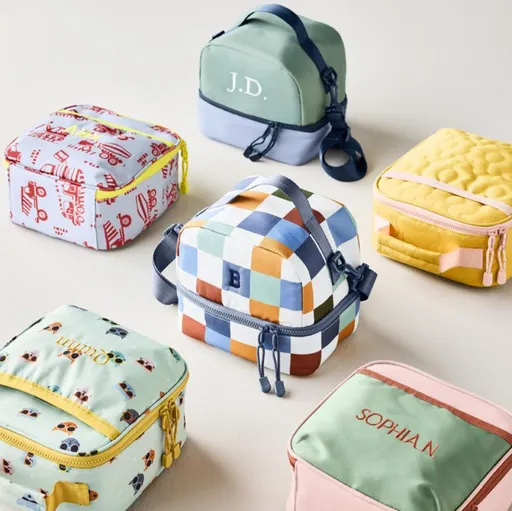 Our Dreamer Standard Soft Lunch Box is perfectly sized to fit multiple food containers, with an adjustable interior divider to keep everything in place and a roomy exterior pocket. In durable, insulated and easy-wipe polyester (that includes recycled plastic bottles), the lunch box features quilted yellow flowers for a sunny burst of cheer. For extra personality, have it monogrammed with a child's name or initials.