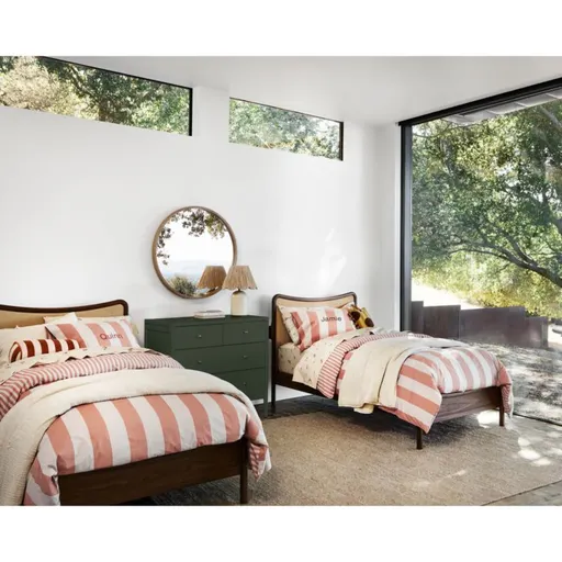 Design is in the details with our Rainey bed: Its curved silhouette in a gorgeous walnut finish highlights an inset panel of breezy natural rattan. The beautifully grained wood is stained to work well with almost any other wood in the room. Whether your kid's room style trends modern or coastal, this versatile, mixed-material design is sure to elevate the space.