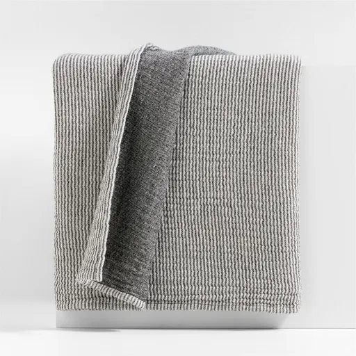 Lightweight and versatile, our reversible throw is made of gauze for a breezy loft and soft, lightly textured feel. Narrow lines in inky black and crisp white stripe one side, reversing to a solid heathered grey. Our throw is perfect for draping over a sofa or foot of the bed for easy access when cool breezes chill. Made of organic cotton, the black-and-white striped blanket coordinates beautifully with our seasonal pillows.