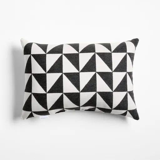 Our Jarah Geo throw pillow invigorates your outdoor furniture with a pop of pattern. Richly woven chenille triangles stand out boldly against a flatweave fabric in neutral oatmeal. We especially love the way the jaunty pattern evokes sails—and the way the solution-dyed Sunbrella acrylic keeps the lumbar pillow looking fresh all season long.