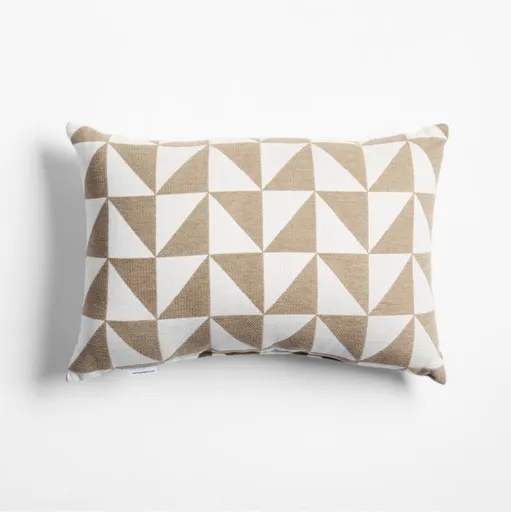 Our Jarah Geo throw pillow invigorates your outdoor furniture with a pop of pattern. Richly woven chenille triangles stand out boldly against a flatweave fabric in neutral oatmeal. We especially love the way the jaunty pattern evokes sails—and the way the solution-dyed Sunbrella acrylic keeps the lumbar pillow looking fresh all season long.