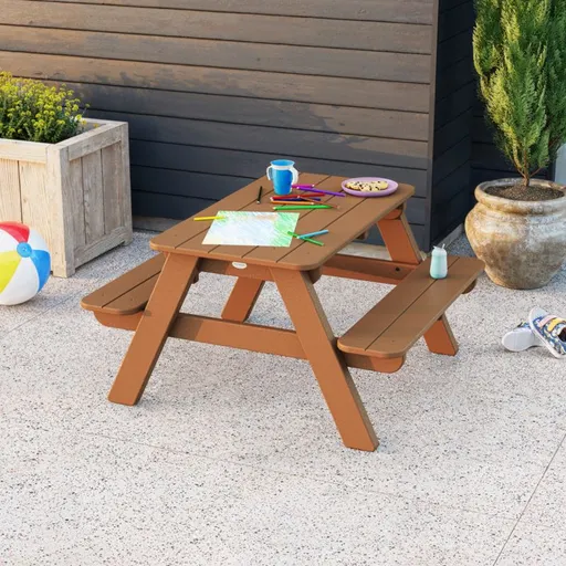 The Kids Picnic Table by POLYWOOD® is the perfect spot for snacktime or playtime. Made of weather-resistant POLYWOOD, a proprietary blend of plastics designed to last season after season, this kid-size table is easy to clean—so the only thing you need to do is sit back and watch your little ones have some backyard fun.