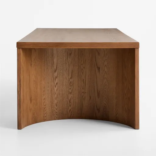Virage leans into the simple drama of clean lines and half-circle curves. An easy way to give your dining room an artful point of view, the table shows off the beauty of solid oak and oak veneer with a warm brown finish to bring out the grain. Opposing barrel-curved supports create the bold silhouette while providing leg room for end-of-table seating. Pair this modern and elegant table with coordinating Virage dining room chairs to seat six to eight diners.