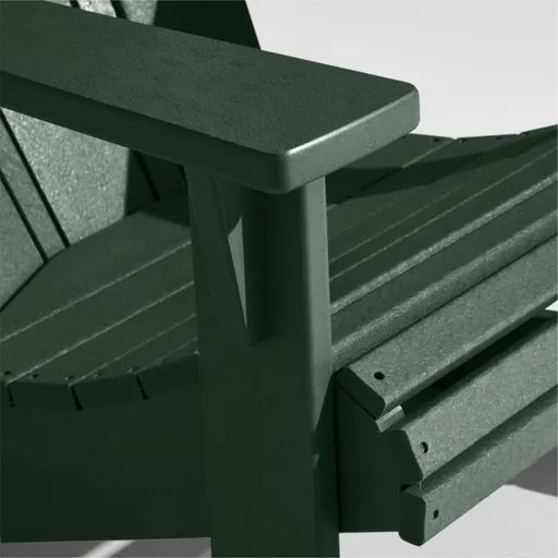 Made of plastic bottles with wood-like texture, this all-weather rendition of the classic Adirondack chair has the same iconic profile that's synonymous with summer. A sloped seat settles you back for relaxing, while the curved base lulls with a gentle rocking action. You'll love the hug of the angled wide-and-thin slat back as well as the extra-wide paddle armrests ready for propping a cool drink. Ready to greet the great outdoors in sage green, the Vista outdoor rocking chair is a Crate & Barrel Exclusive.