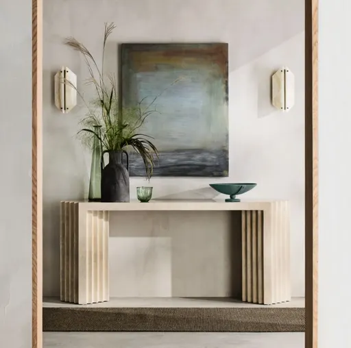 Inspired by Art Deco design, our Vivien sconce delights with the unique glow of translucent stone. Faceted slabs of cream onyx wash walls with warm light, the natural veining creating beautiful, organic variation. Brass details finish the wall light with a gleaming touch. Vivien adorns your wall with a jewelry-like presence we're obsessed with.