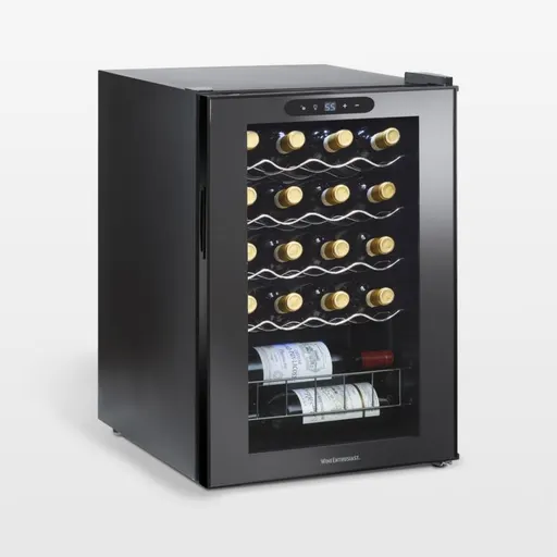 Keep wine perfectly chilled and easily accessible in this quiet and compact cooler. Removable chrome wire adjustable shelves cradle standard bottles, while the storage bin accommodates oversized and odd-shaped vessels. Use the user-friendly touchscreen control panel to set the temperature exactly to suit your preferences and your wine collection.