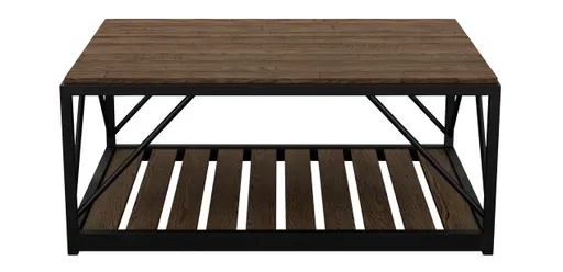 Crafted from knotty oak plank top with hand forged iron base. Textured rustic tabletop: layered offset planks, hand-sanded saw marks, artful hand-distressing, small unfilled knots, antiquing. Each tabletop is unique: variations in natural markings, coloration, and distressing are expected. Iron-framed slat shelf. Nylon floor slides. Additional finishes are available for order in Design Centers. Beam End Table also available. Other materials may be used on internal and secondary components. Made in the U.S. by Ethan Allen artisans. Packaged weight: 112 lbs. Product images may be digitally rendered; final product may vary slightly from rendering. Fabric swatches and finish samples are available for most items, free of charge.
