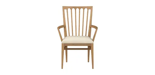 Our Benham dining armchair features a broad, slatted fanback design that's reminiscent of Windsor chairs, but we've made it more modern with angled corners and a generous upholstered seat. Choose your fabric or leather and your wood finish to have your Benham made to order in our workshops.
