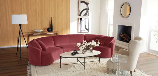 If you're looking for a new angle on the living room or family room sectional, you've found it; our Calista curved three-piece sectional is a beautiful option for extended seating and designer appeal. It's modern yet welcoming and takes its personality from the fabric you select, which will be hand-tailored to its frame by the craftspeople in our North American workshops.