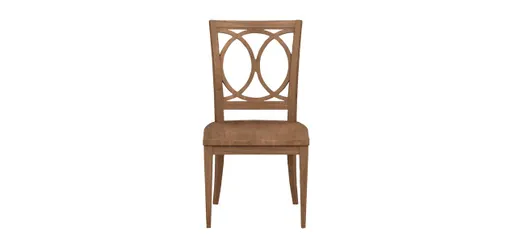 A transitional wood-seat dining side chair that turns heads no matter the setting. Serve up some drama in your dining room with Cyra, which we craft by hand in our North American workshops. We especially love the eye-catching interlocking circle motif on its back.