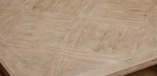Offering a classically inspired design with a rustic attitude for today’s more casual lifestyles, this rubberwood coffee table with oak veneers features large decorative turnings on the legs and an ample shelf. The top style is reminiscent of parquet flooring, which allows the light oak finish to hang up in the surface crevices.