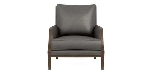 Graphically inspired, this chair has an edgy look with its exposed curved wood frame and flared legs, and Chippendale-influenced styling. A comfortable loose back and well cushioned seat ensure it is destined to become a favorite respite. With its exposed wood frame and loose welted back and seat cushions, the Grayson Lounge Chair is both comfortable and casual. Poly-wrapped foam cushions provide a soft, structured seat. Crafted of kiln dried solid hardwood; available in several water-based finishes. Includes hook and loop fasteners to prevent back cushions from falling out of place. Most of our hand-selected leathers can resist spills and stains. Order a swatch to learn more, or view our Use & Care brochure. Pair with our Grayson Leather Ottoman. Also available in fabric.