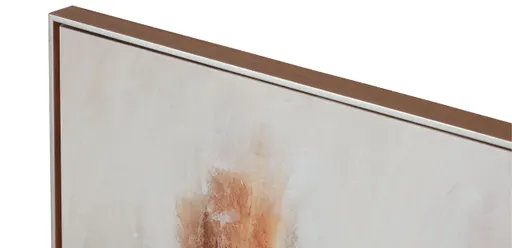 A muted landscape of copper, cobalt, and chartreuse balances a calm, white background. Each stroke of color adds a layer of texture that welcomes visitors to pause and admire this abstract art print, whether it's hung in a formal or casual space.