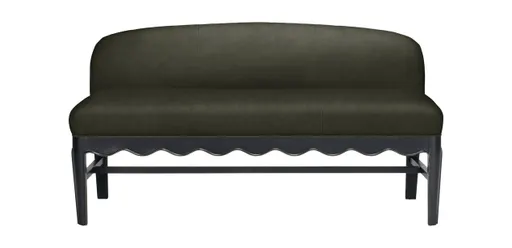 Our lovely Leona leather bench features a modern low back and cottage-inspired scalloped shaping on its exposed wood frame. Tailored by hand in your choice of selective leathers, and with optional nailhead trim, it’s a pretty place to pause in the foyer, hallway, dining room, or at the foot of your bed.